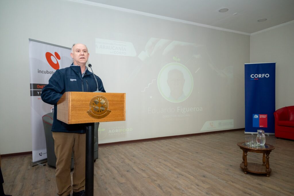 Eduardo Figueroa Goycolea, director Regional de Corfo sostuvo que, “venimos trabajando en generar espacios de colaboración y conocimiento, que permiten la conexión entre lo público, privado y la agroindustria, instancias que ayudan a reflexionar sobre cómo poner en valor nuestra agricultura y productos, desde la Araucanía al mundo. Conexión AgriFood, muestra algo muy interesante, que es la generación de espacios entre exalumnos y egresados, articulando un trabajo conjunto para generar un ecosistema de colaboración, destacando el valor que destaca y pone en valor y conocimiento de estos profesionales”.
