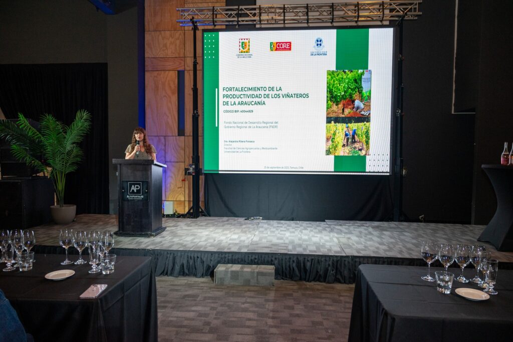 La directora del Programa de Fortalecimiento de la Productividad de los Viñateros de La Araucanía y directora del Centro de Fruticultura UFRO, Dra. Alejandra Ribera, valoró el respaldo del Gobierno Regional y subrayó que “este esfuerzo conjunto ha logrado fortalecer la competitividad de productores locales, muchos de ellos con tradición campesina, apuntan a posicionar a la región como un territorio con identidad enológica propia”.
