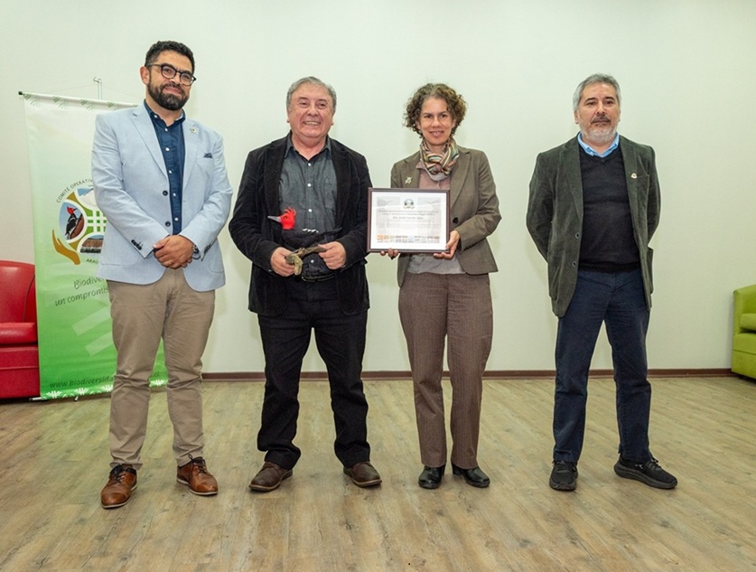 Uno de los momentos más significativos fue la entrega del Reconocimiento “Carpintero Negro 2025” al académico Ufro Rubén Carrillo López, docente de la Facultad de Ciencias Agropecuarias y Medioambiente y director del Departamento de Ciencias Agronómicas y Recursos Naturales, por su valioso aporte a la conservación de especies nativas y al conocimiento de la biodiversidad en La Araucanía.